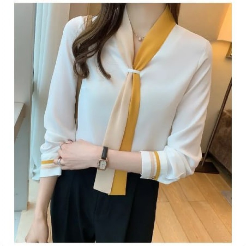 Baju wanita Chiffon Blouse Gaya Korea pakaian pejabat wanita baju gaya korea wanita blaus elegan baju wanita