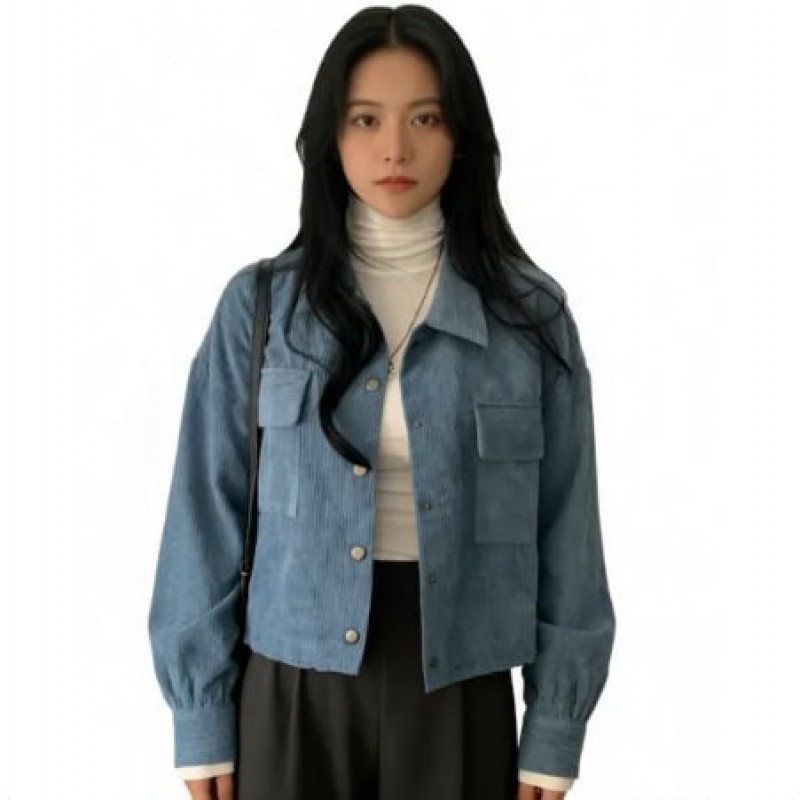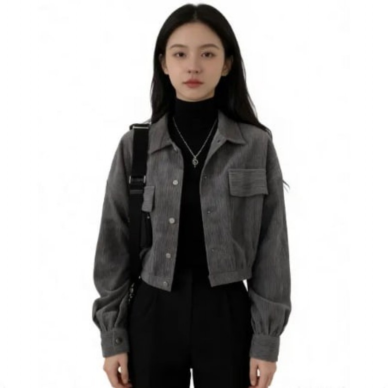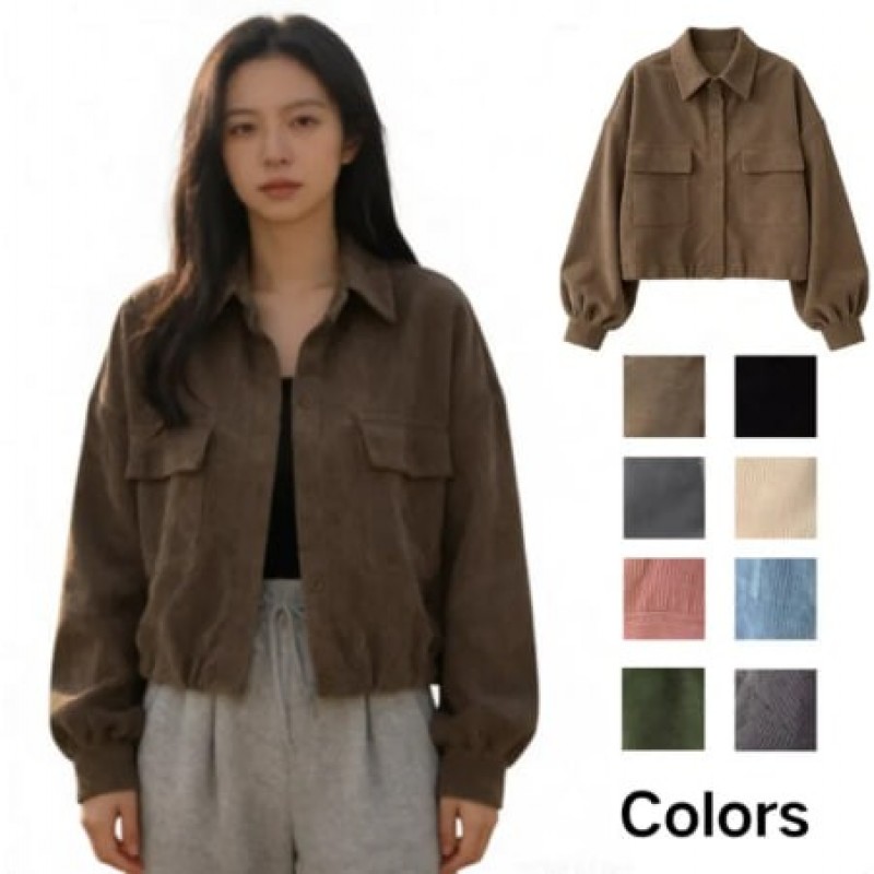 Baju Blouse Wanita Retro Kasual Jaket Corduroy Longgar Lengan Panjang 37.6 |