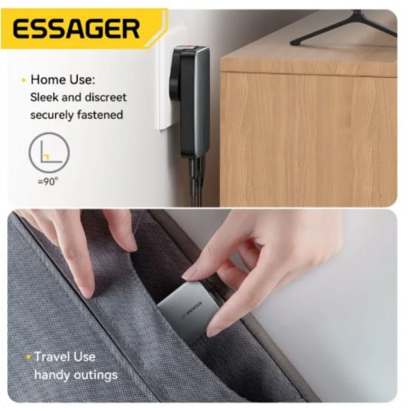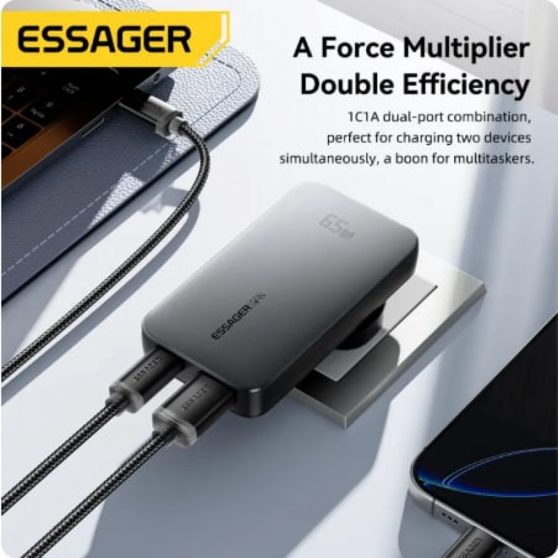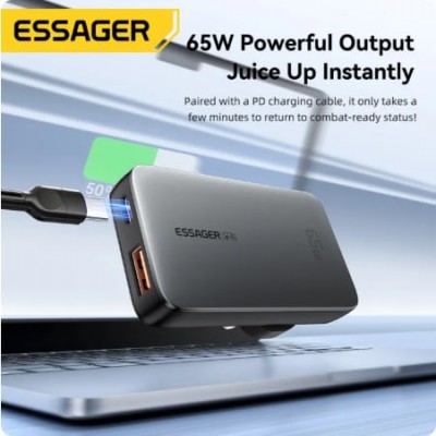Essager Ultrathin 65W GaN USB A jenis C pengecas untuk Tablet Laptop pengecas pengecas cepat untuk iPhone16 15-8 siri ipad Macbook Huawei Xiaomi15 Pro Samsung telefon Super cepat caj A + C pengecas