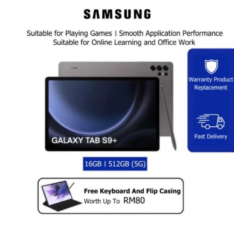 Tablet Samsung Galaxy Tab S9+ 5G (16GB RAM+512GB ROM) – Paparan 11 inci | Kamera AI 13MP | Bateri 12000mAh