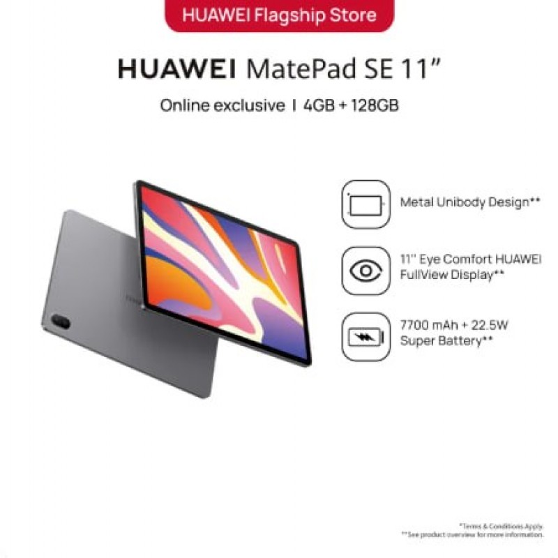 HUAWEI MatePad SE 11 ''Tablet | 4 + 128GB | Reka bentuk Unibody logam | Keselesaan mata HUAWEI FullView Display | 7700 mAh + 22.5W Super Battery