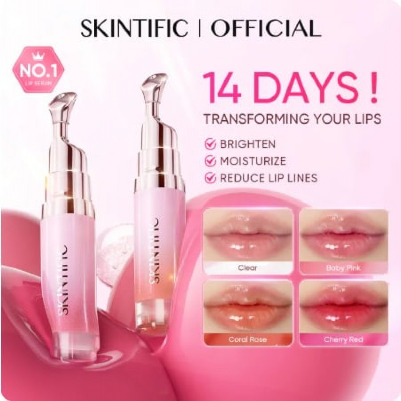 SKINTIFIC Vitamin E Lip Serum mencerahkan bibir bibir bibir 3 in1 mencerahkan, melembapkan, dan melicinkan | Menyuburkan | Bibir merah jambu | Bibir lembut